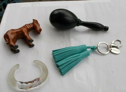LOT Vintage Wooden Sewing Sock Darner Mender Wooden Donkey Key Chain Bracelet NR