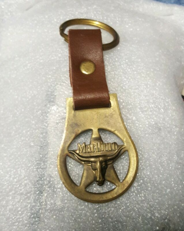 Title (ebay affiliate link): Marlboro Vintage Brass Star Longhorn Steer Key Chain Ring Leather Keychain