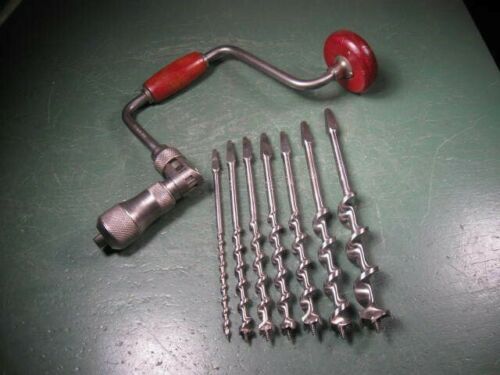 Title (ebay affiliate link): OLD USED VINTAGE WOODWORKING TOOLS PREMIUM BIT BRACE DRILL W/ STANLEY AUGERS