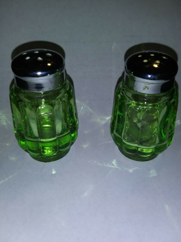 Title (ebay affiliate link): Heavy Thick Green Depression glass salt and pepper shakers