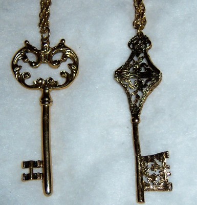 Title (ebay affiliate link): 2 Large Vintage Brass Key Pendants & Chains - 4" Roman