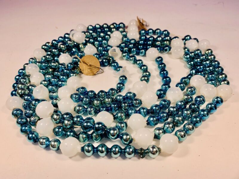 VINTAGE MERCURY GLASS BEADS CHRISTMAS GARLAND BLUE JAPAN MILK GLASS