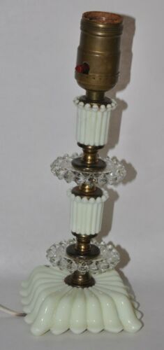 Vintage Boudoir Electric Lamp Nightstand Yellow Milk Glass Hobnail Boopie
