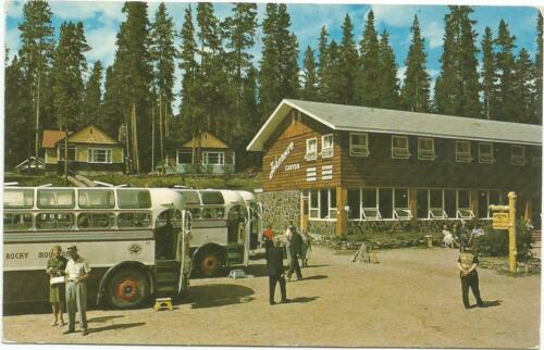GRAY LINE ROCKY MOUNTAIN TOUR BUSES AT JOHNSTON''S CANYON BANFF CANADA POSTCARD