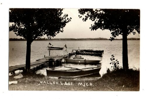 Title (ebay affiliate link): MI Michigan Walled Lake Boat Dock Scene Oakland County Postcard RPPC