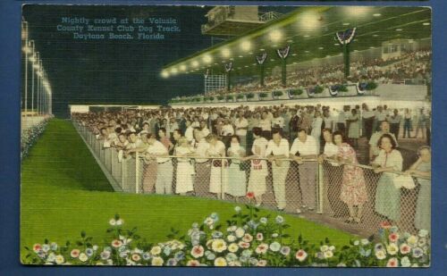 Title (ebay affiliate link): Daytona Beach, Fl/ night crowd Volusia County Kennel Club Dog Track/postcard