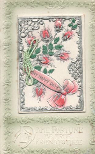 PRETTY BB VINTAGE GREETING postcard: EMBOSSED FLOWERS OPENING SECTION ON FRONT
