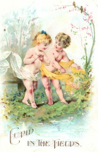 Title (ebay affiliate link): VINTAGE postcard: CUPID IN THE FIELDS surname SYMES Altrincham 1912