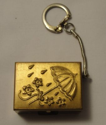 Title (ebay affiliate link): VINTAGE BRASS PILL BOX KEYCHAIN WITH UMBRELLA DESIGN