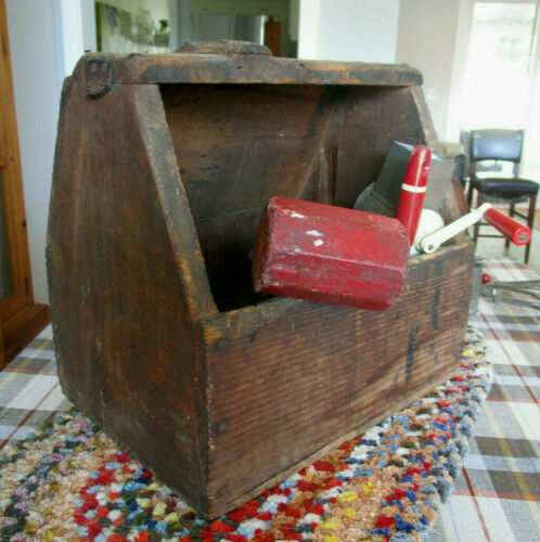 Title (ebay affiliate link): ANTIQUE RUSTIC PRIMITIVE WOODEN UTILITY BOX / FARM TOOL CADDY ~ AAFA