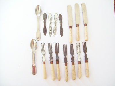 16 pcs ant/vintage toy flatware, knives, forks, spoons