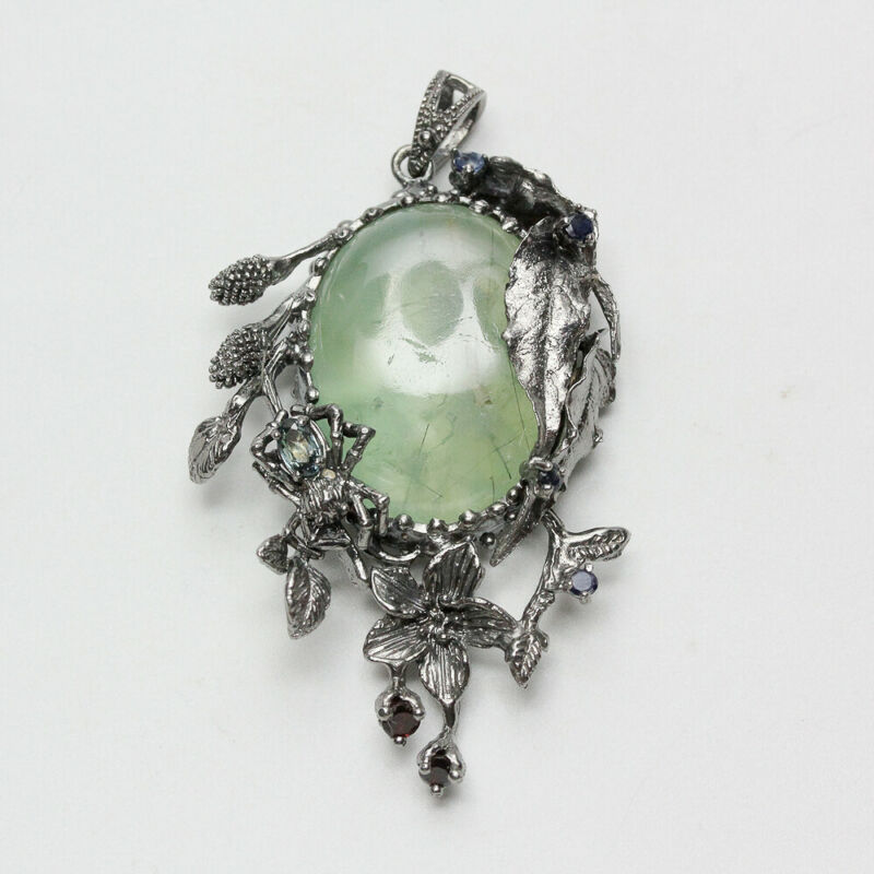 Title (ebay affiliate link): Vintage Antique Jewelry Natural Prehnite 925 Sterling Silver Pendant /P00249