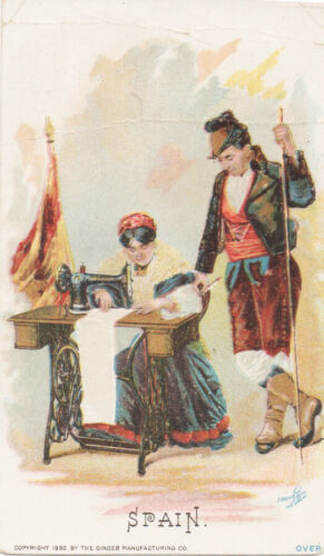 Title (ebay affiliate link): 4 Antique Singer sewing machine trade cards - national dress costumes - Spain