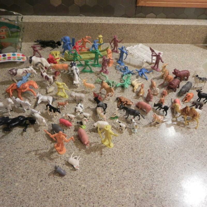 Title (ebay affiliate link): #01865 Vintage lot Colorful Cowboys Indians Farm Wild Animals Canoe Fence Play