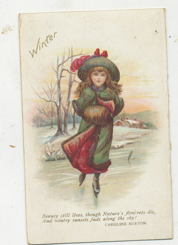 D1115 VICTORIAN TRADE CARD ICE SKATING A.C. MCLURG STATIONERY CHICAGO