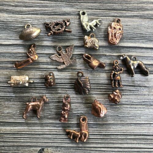 Vintage Cracker Jack Gumball Prize 18 Assorted Charms Metal Copper Lot D
