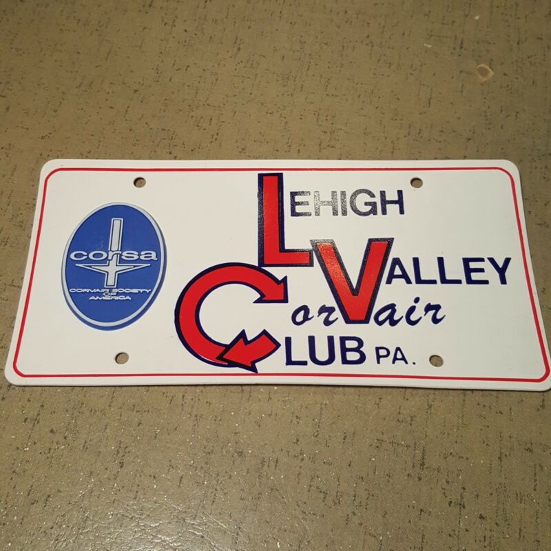 Lehigh Valley Corvair Club PA corsa Corvair Society of America License Plate