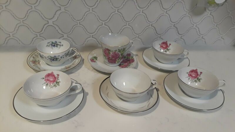 Mismatched Lot Of 6 Tea Cups and Saucers
