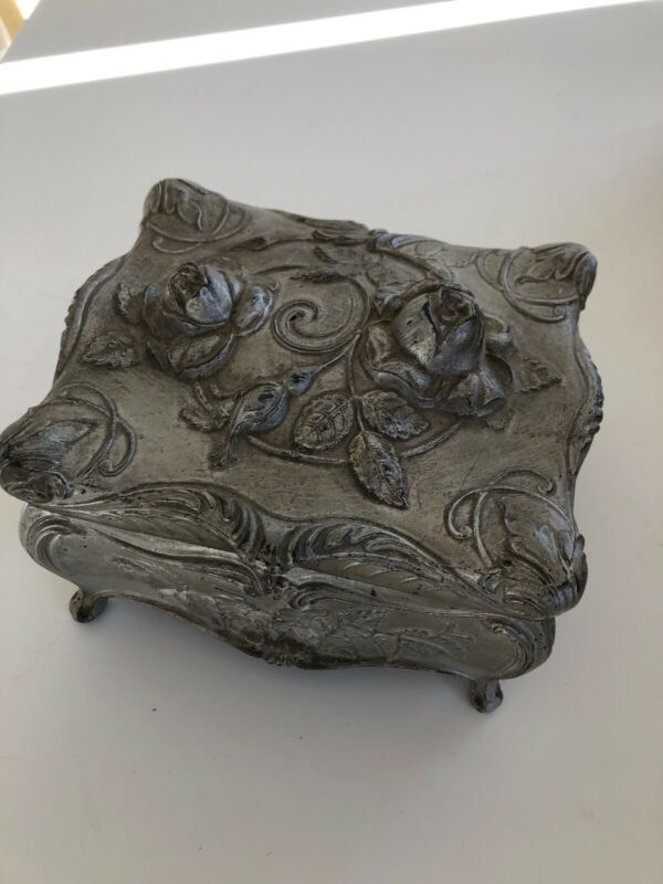 Title (ebay affiliate link): Vintage Metal Casket Jewelry Box Roses Art Nouveau Floral Heavy Shabby Patina