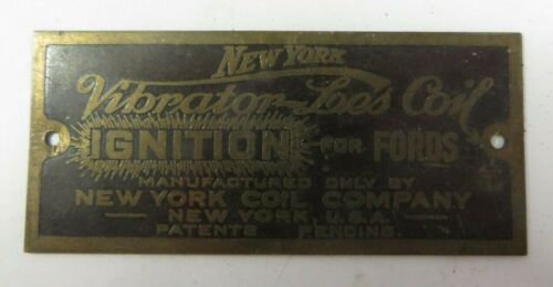 Title (ebay affiliate link): Vtg New York Coil Company Vibrator Les Coil Ignition Fords Metal Data Plate Tag