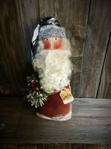 *Primitive 11X4IN SANTA W/SNOW Fabric HANDMADE Country old rusty doll*