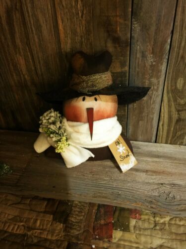 *Primitive 8x8in SNOWMAN HEAD LG HAT Fabric HANDMADE Country old rusty doll*