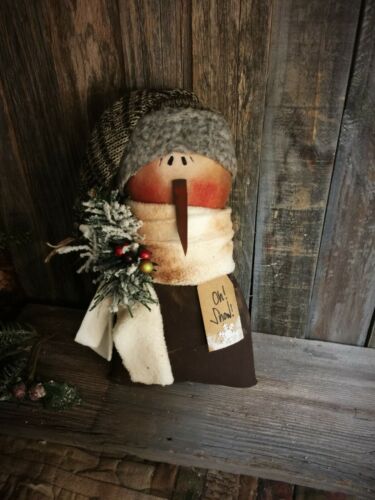 Title (ebay affiliate link): *Primitive 11x6in BROWN SNOWMAN II Fabric HANDMADE Country old rusty doll*