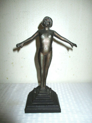 Art Deco Nude Lady Cast Metal Lamp Figurine