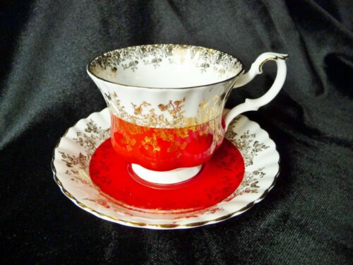 Vintage Royal Albert Bone China Cup and Saucer 4396 England Red White Gold