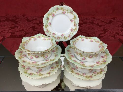 Set of 4 Antique M Z Austria China Ramekins & Under Plates Custard Cups Roses