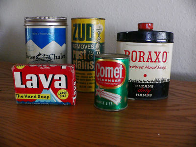 VINTAGE cleaning containers Boraxo ZUD Lava Comet Swiss