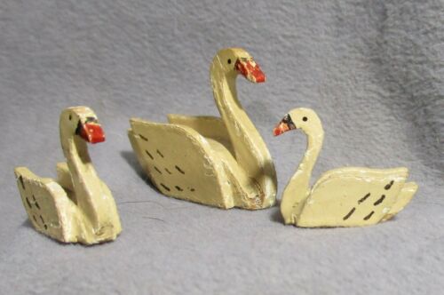 Vintage Erzgebirge Putz Miniature Wooden Farm Animals - Swan Family
