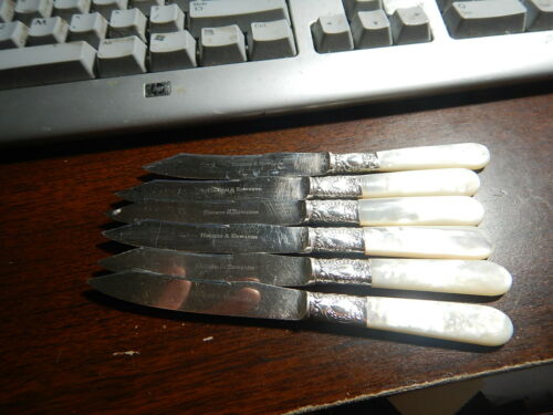 Title (ebay affiliate link): Six mother of pearl handle fruit knives Holmes & Edwards sterling old estate