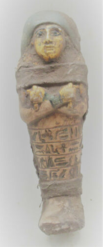 Title (ebay affiliate link): CIRCA 664-332BCE ANCIENT EGYPTIAN USHABTI SHABTI WITH GOLD GILT & HEIROGLYPHICS