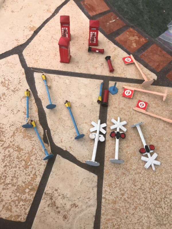 Train Layout Figures Village Signs Phone Booth Rr Crossing Metal Japan Ect