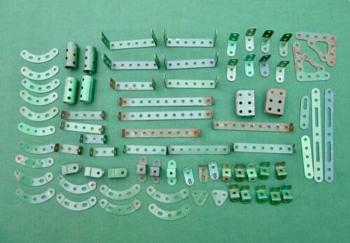 70+ MECCANO GREEN, STRIPS, BRACKETS, PLATES, CORNER GUSSETS, CHANNELS, JOB LOT