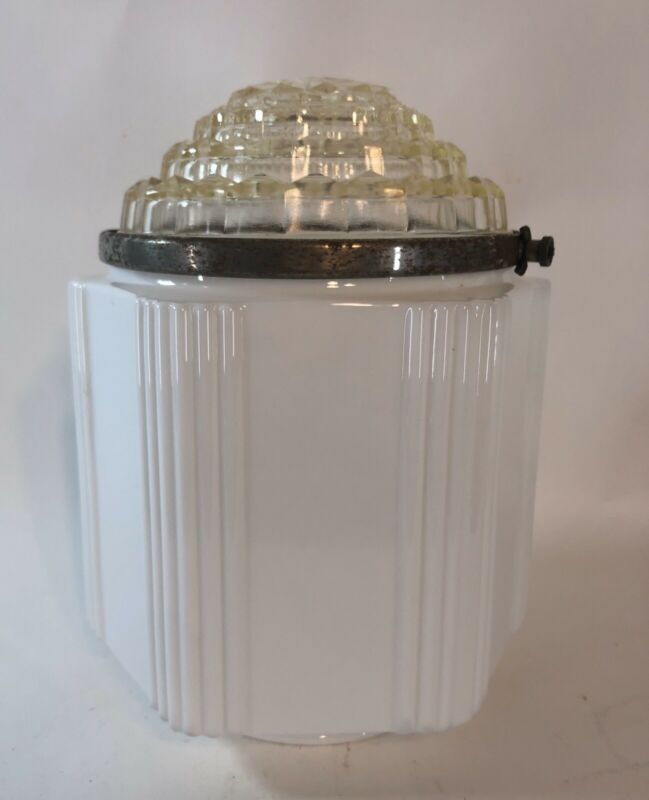 Vintage 12" Art Deco Skyscraper Ribbed Milk Glass Ceiling Light Shade