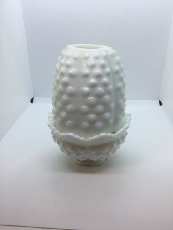 Fenton Milk Glass Hobnail Fairy Lamp Candle Holder