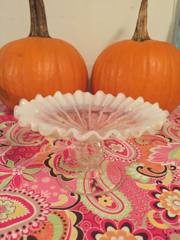 Vintage Ruffled Footed Dish Clear/Milk Glass