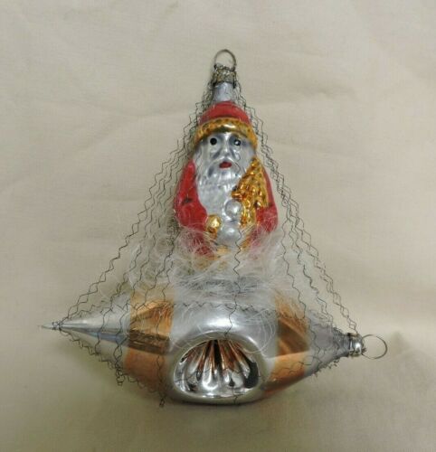 Antique 1940''s German Glass Christmas Ornament AMAZING FLYING SANTA