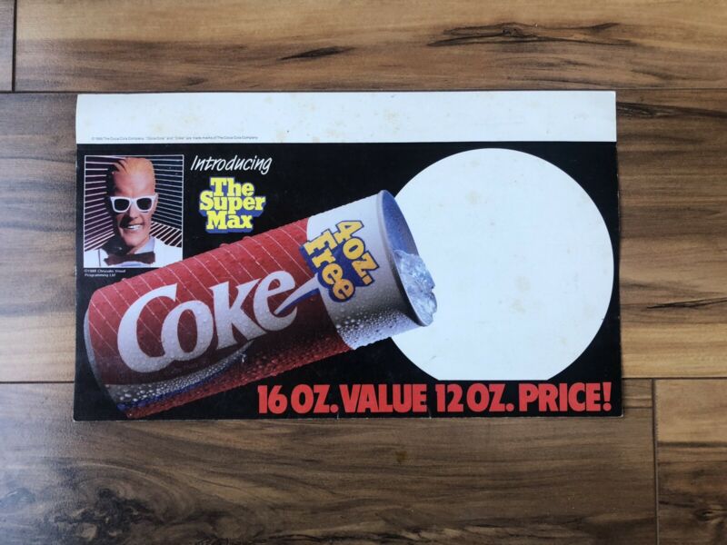 Title (ebay affiliate link): Vintage Coca Cola Max Headroom Rack Sign 1988 Cardboard New Old Stock