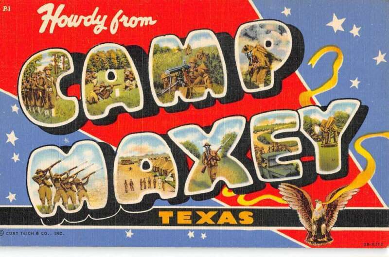 Title (ebay affiliate link): Camp Maxey Texas Large Letter Linen Military Vintage Postcard K342412