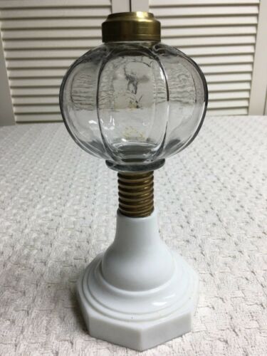 Title (ebay affiliate link): BIG SALE Ca 1800''s EAPG ATTERBURY OCTAGON on WHITE MILK GLASS BASE OIL LAMP