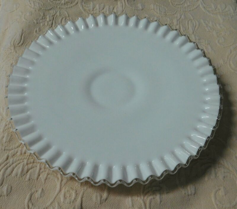12" Vintage Fenton Silver Crest Milk Glass Low Pedestal Cake Plate Stand Signed