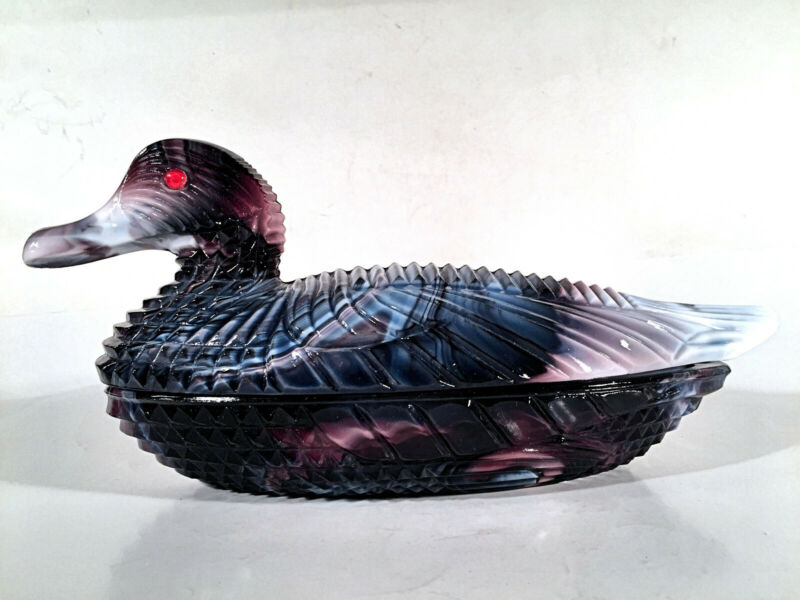 Title (ebay affiliate link): LG Wright Purple Marble Milk Glass Atterbury Style Duck Covered Dish