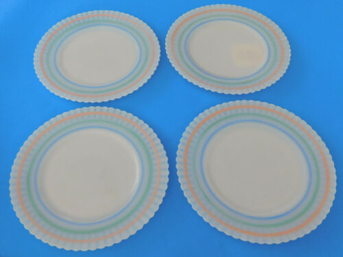 Title (ebay affiliate link): 4 Vintage Petalware MacBeth-Evans Glass 8" Monax White Pastel Band Salad Plates