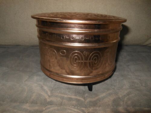 Vintage Copper Tone Footed Tin Container Made in West Germany