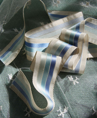 ANTIQUE FRENCH SILK STRIPE RIBBON BLUES DOLL BEBE TRIM