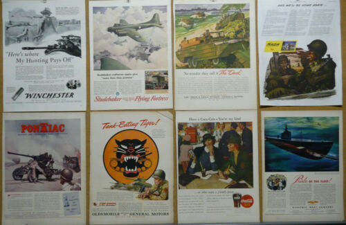 Title (ebay affiliate link): 1942-1945 WWII Ad Lot (120) Winchester RCA Pontiac Coca-Cola GM Bendix Kodak A&P