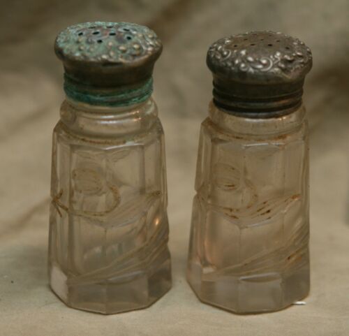 Title (ebay affiliate link): Antique Victorian Deep Etched Glass Salt & Pepper Silver Plate Caps Tarnished